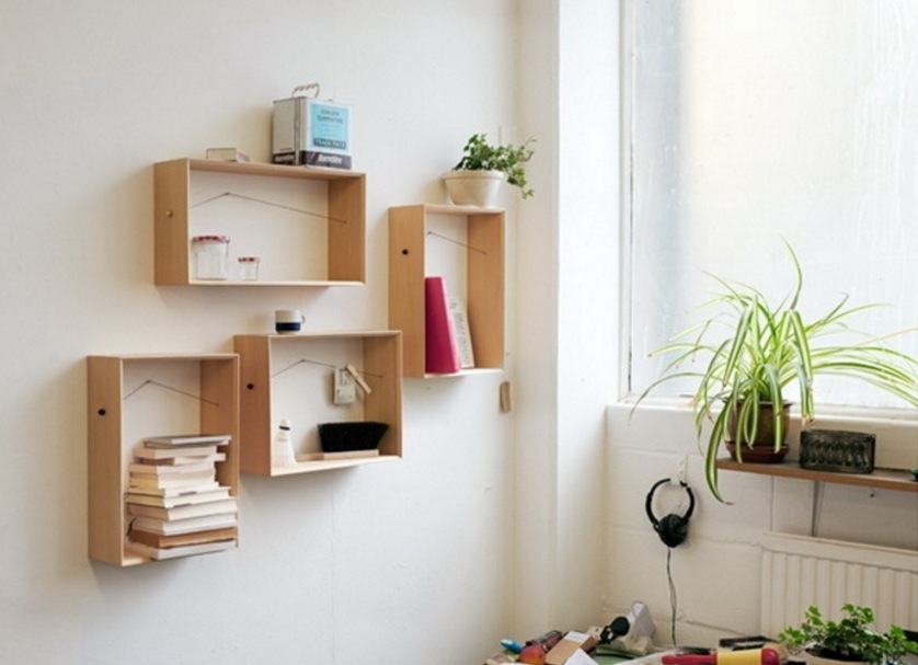 Сперва вы можете поэкспериментировать со скотчем и подобрать гармоничные размеры и расположения навесных полок
