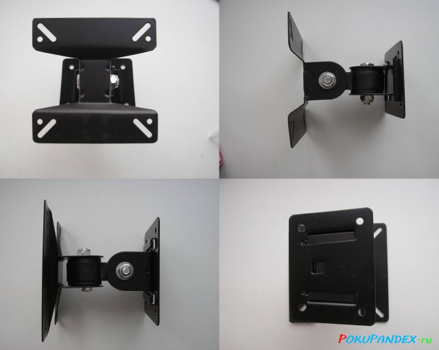 Этот вид креплений занимает немногим больше места. Конструктивно модели очень похожи на предыдущий тип, добавлена только одна степень регулировки. Так как экран обычно наклоняют немного вниз, то подвижным делают именно верхнее крепление.