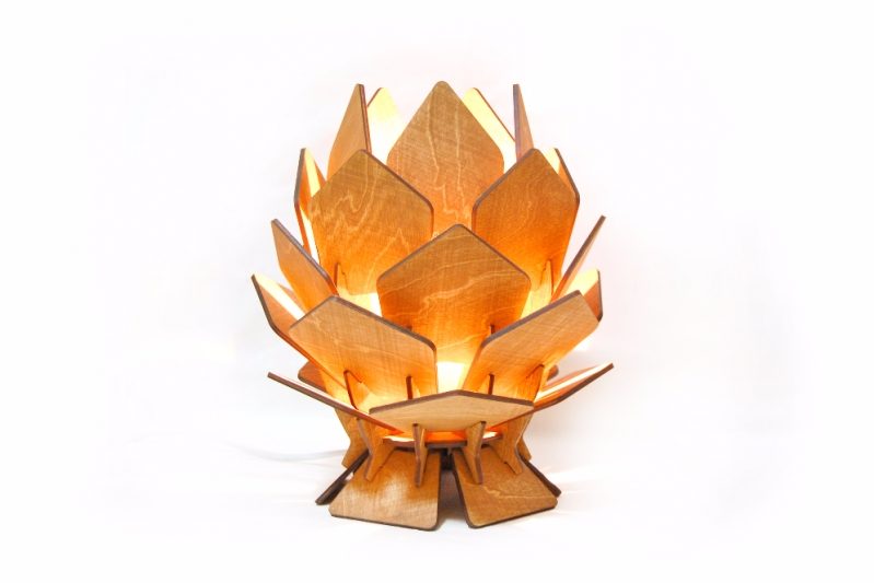 Лазеры творят чудеса. Изумительные по простоте, но объемные по сложности изделия доступны лазерному лучу и творческому уму. Знание графических программ не будет лишним, но даже из примитивных фигур можно составить практичное и красивое изделие. Мало кто отказался бы от люстры в виде сосновой шишки.
