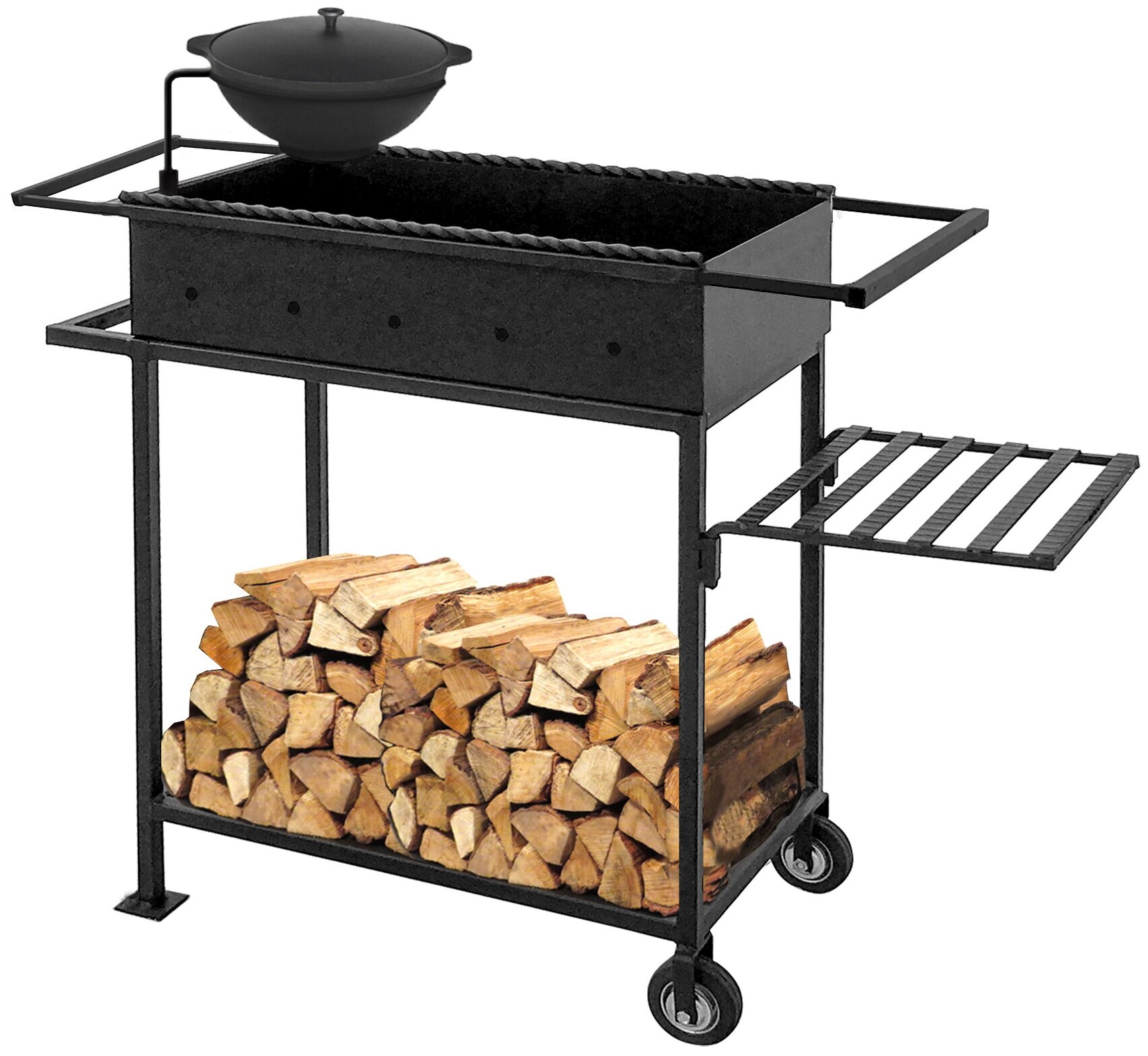 Стационарный металлический мангал готов. Можно приделать к нему дополнительные ручки (для удобства перемещения с места на место), крючки, решетки и даже колесики для транспортировки.