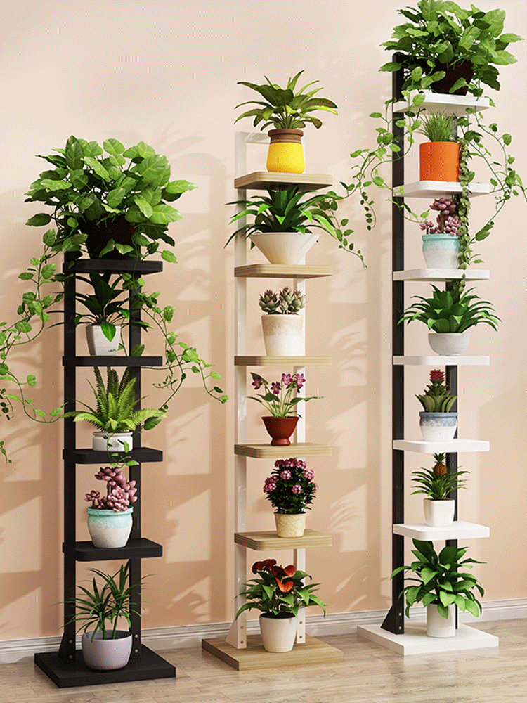 Они могут вмещать сразу несколько вазонов, но при этом занимают не так много места, как обычные напольные изделия.