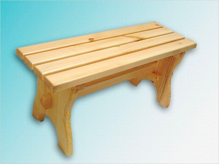 Готовое изделиеВариант 2 – лавка на ножкахЕсли у вас нет досок нужной ширины, сиденье для лавочки можно сделать из нескольких продольных деталей, собирая их встык или с небольшими зазорами. Такие зазоры не создадут неудобств при сидении, но позволят дереву быстрее сохнуть и проветриваться, если скамейка будет стоять на улице или в бане.