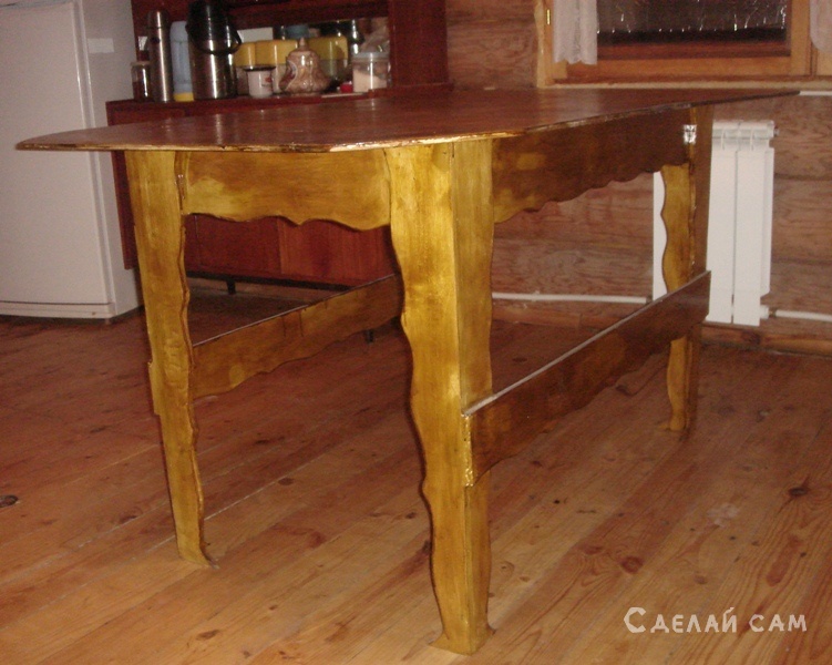 Следующий способ позволяет не только собрать современную модель деревянного стола без колоссальных затрат, но и переделать старую столешницу.