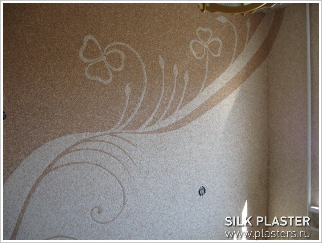 В состав некоторых видов жидких обоев входят компоненты обработанного специальным образом шёлка. Такие обои придадут вашей квартире эффект ткани на стенах, символизирующей шик и богатство.